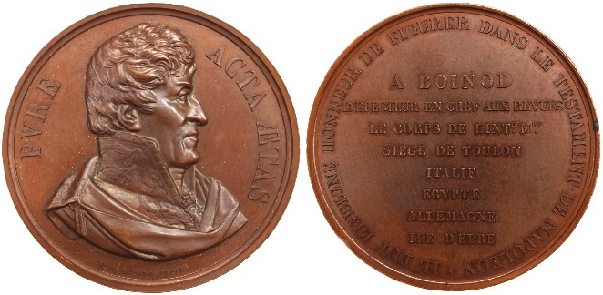 Medaille aus dem Jahr 1845 auf den Inspecteur en Chef aux Revues Jean Boinod. Kupfer Ø 59 mm, Medailleur: Eugène-André Oudiné (Privatsammlung).