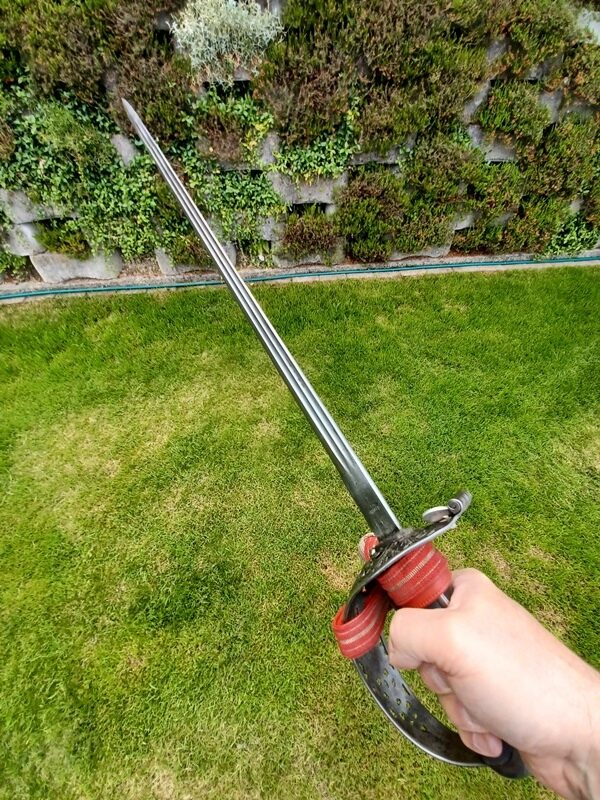 - der sog. Feldweibelsäbel für unberittene Unteroffiziere, mit leicht gebogener Klinge von 700 mm Länge, Lederscheide [Säbel für höhere Unteroffiziere oder auch Feldweibelsäbel, Ord. 1883];