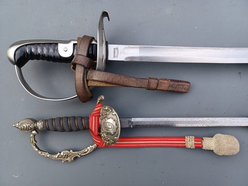 Heutzutage wird in Sammlerkreisen eine Waffe mit langer, gerader Klinge als Degen, eine mit gekrümmter Klinge als Säbel identifiziert. Stöbert man aber in schweizerischen Dokumenten aus der Zeit um 1900 kommt eine gewisse Konfusion auf. Denn dort wird der Offiziersdegen Ord. 1899 durchwegs als Säbel betitelt. Selbst in der entsprechenden Ordonnanzerklärung ist von einem Säbel mit gerader Klinge die Rede. Welche Bezeichnung ist denn nun richtig?