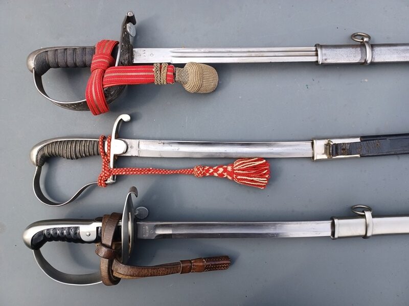 - der Offizierssäbel Mod. 99 mit gerader Klinge von 765–865 mm Länge, blanke Stahlscheide [Offiziersdegen, Ord. 1899];