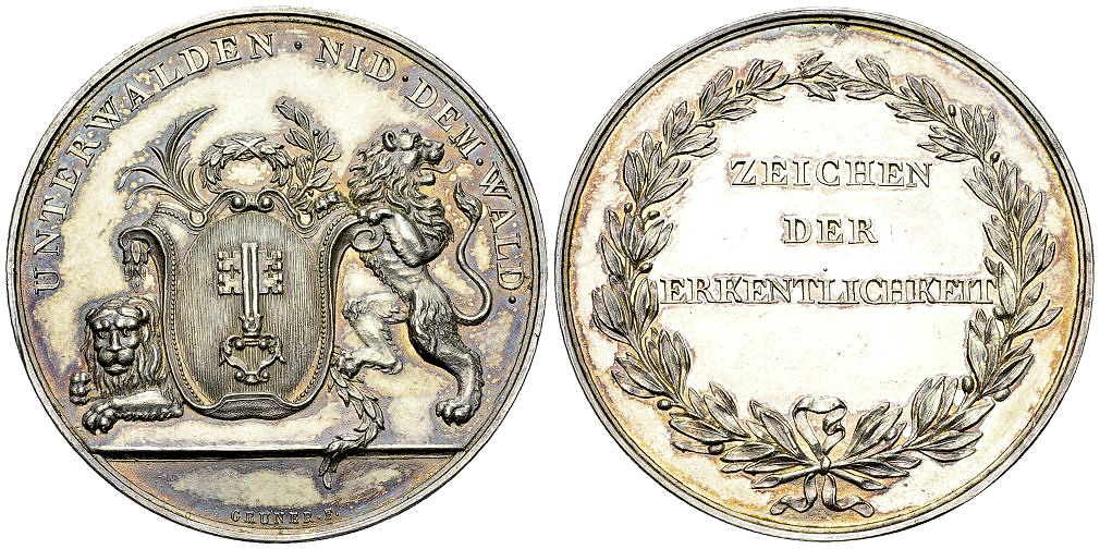 Auch später noch zeichnete die Nidwaldner Regierung verdiente Personen mit solchen Medaillen aus. Im Jahr 1898 beispielsweise, wurde Oberst Rudolf Bindschedler, anlässlich seines Rücktritts als Kreisinstruktor, ein Exemplar überreicht.