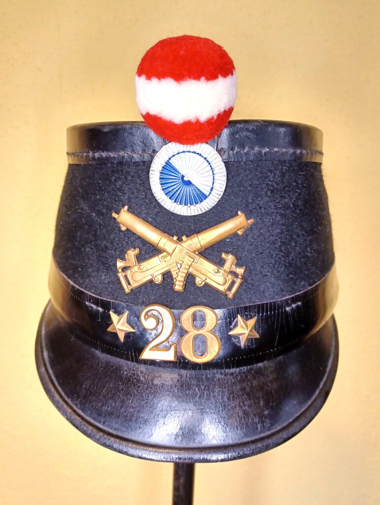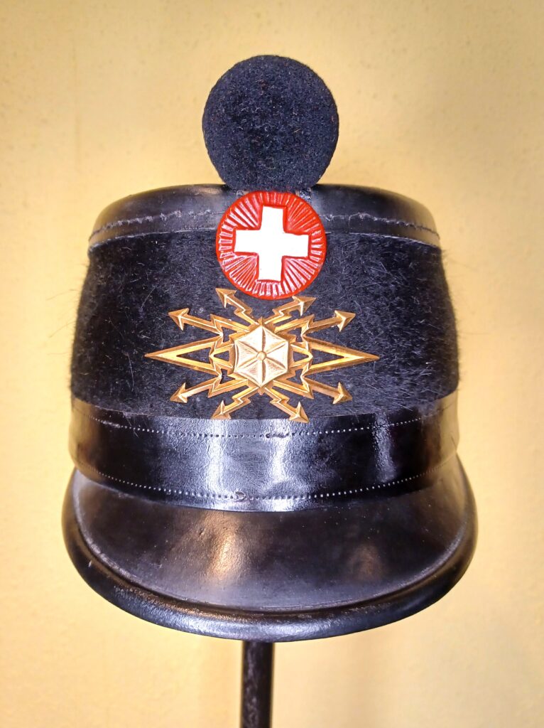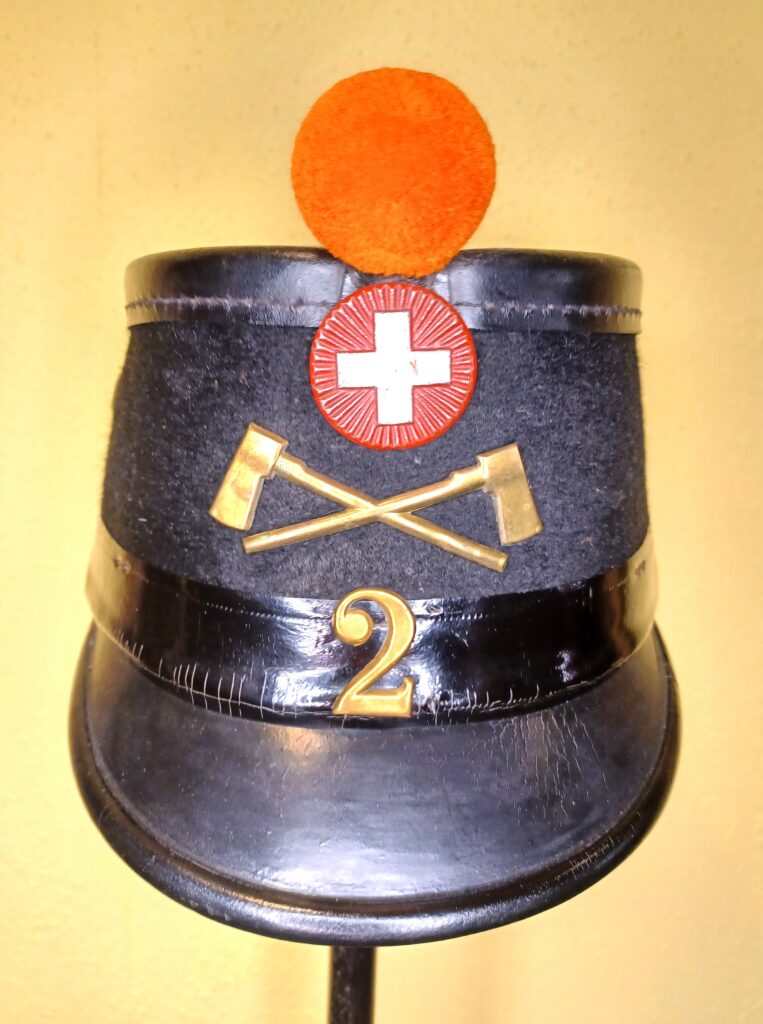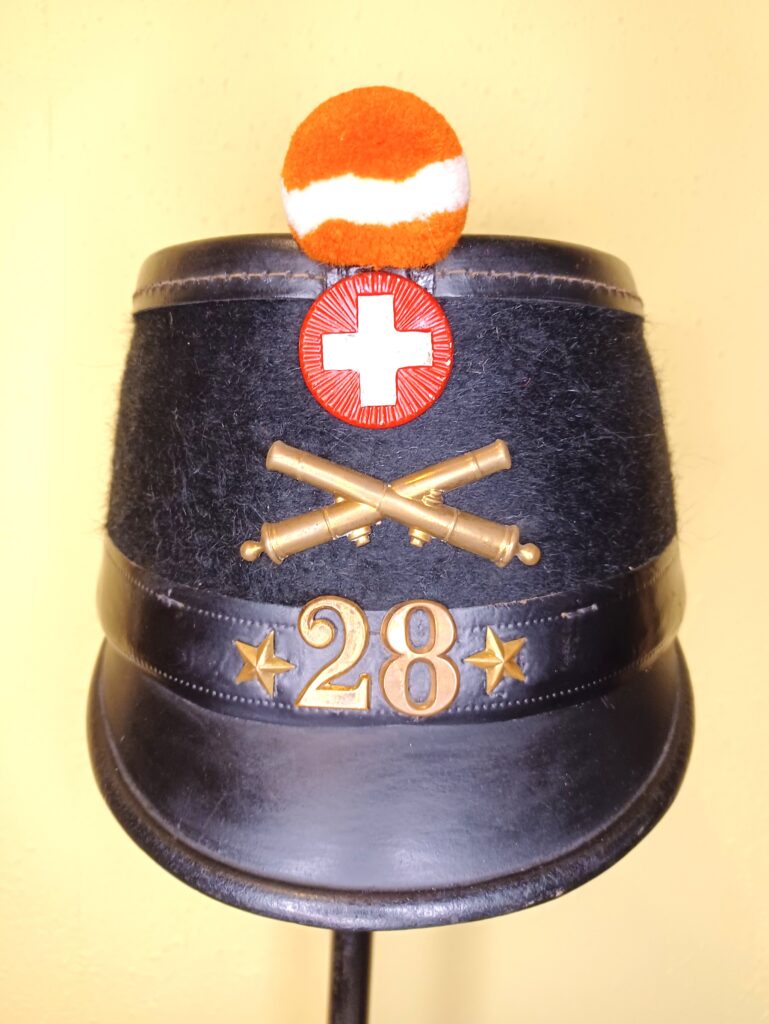 Kokarde: unklar. Gemäss Reglement, eidgenössisch. Wahrscheinlich trugen die Einheiten jedoch kantonale Kokarden.