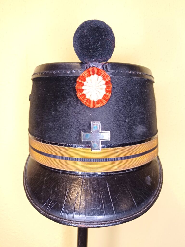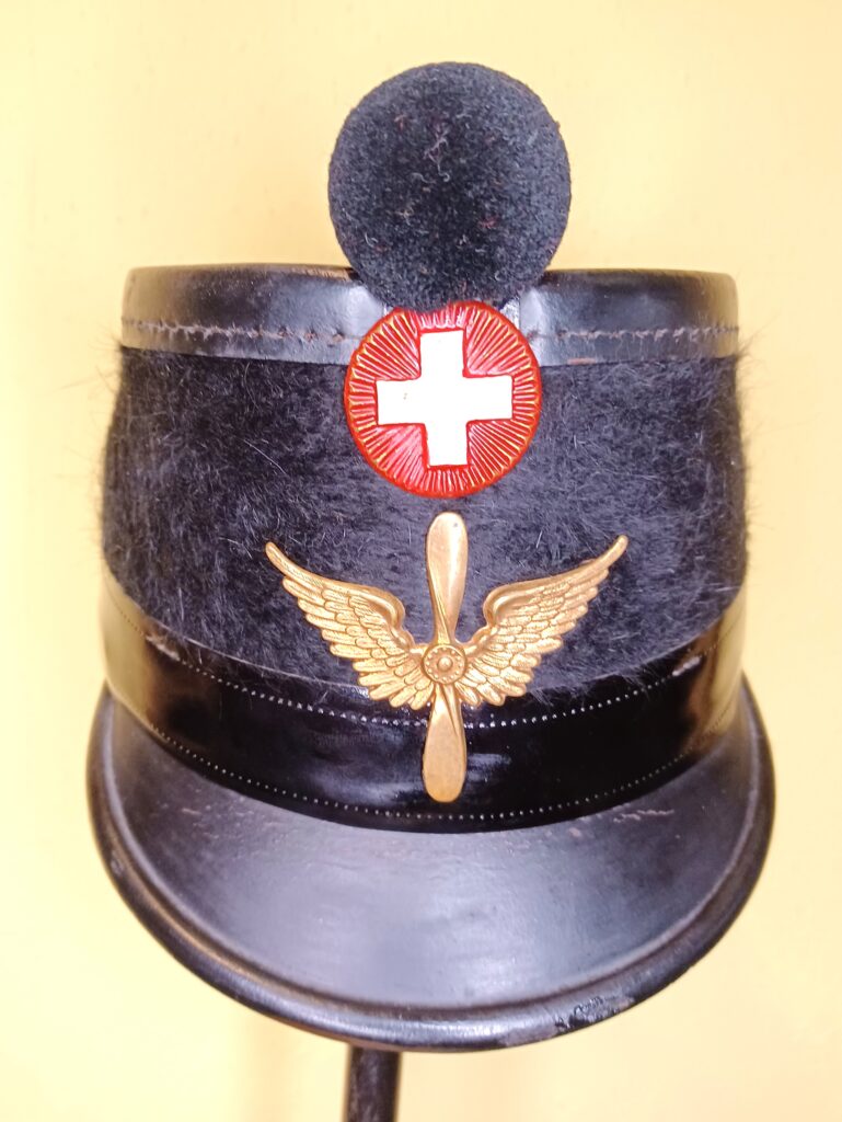 Anmerkung: Die Sanitätstruppen, zu denen auch der Veterinärdienst zählte, trugen weisse, bzw. silberne Abzeichen und einen blauen Pompon. Die (Menschen-)Ärzte trugen allerdings goldene Abzeichen. Grundsätzlich hatten Stabsoffiziere dieselbe Abzeichenfarbe wie die Stammtruppe zu tragen. Bei der Sanität also silbern. Veterinär-Stabsoffiziere trugen zweifellos silberne Abzeichen. Ob dies auch bei den Ärzten so war, oder ob diese als Stabsoffiziere weiterhin goldene Abzeichen trugen, ist nicht bekannt.