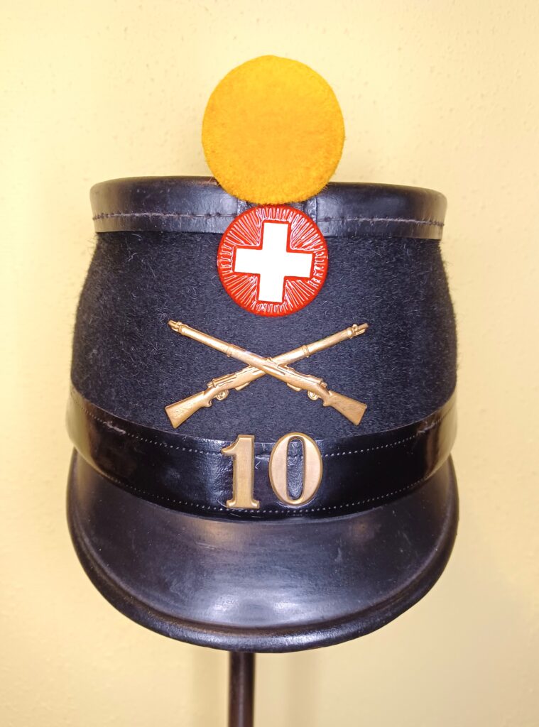 Pompon: 1898-1916: schwarz. / Ab 1917: grün (1. Kp), grün-weiss (2. Kp), orange (3. Kp).