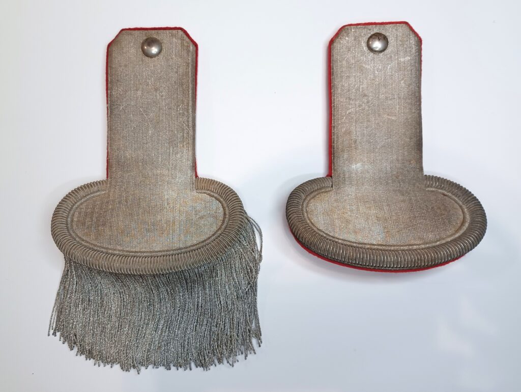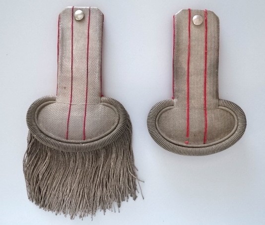 - Oberleutnants trugen eine Epaulette mit Fransen auf der linken und eine Contreepaulette ohne Fransen auf der rechten Schulter. Auf dem Epaulettenband war ein roter Streifen angebracht.