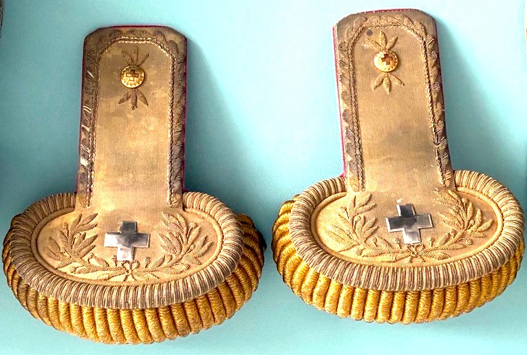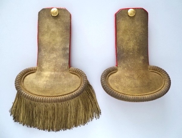 Die Epauletten der Artillerieoffiziere waren golden. Ihre Unterseite bestand aus scharlachrotem Tuch. Der Knopf war golden und mit dem Gepräge von zwei gekreuzten Kanonenrohren und einer Granate versehen.