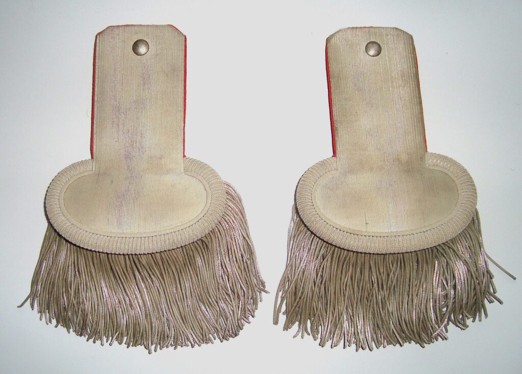 - Hauptleute trugen eine Epaulette mit Fransen auf der linken und eine Contreepaulette ohne Fransen auf der rechten Schulter. Auf dem Epaulettenband befanden sich keine roten Streifen.