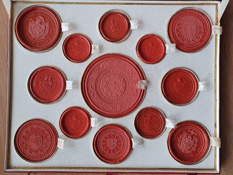 Man muss anerkennen, dass dieses, in edlem Behältnis daherkommende, äusserst dekorative Siegelsortiment, das Selbstverständnis und die Würde der neuen eidgenössischen Behörden auf das Beste repräsentierte.